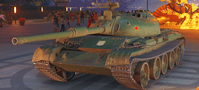 この戦車は中国の中戦車でバランスの取れた万能戦車です。主砲は105mm砲で平凡なのですがプレミア弾のHEATが貫通350mmと中戦車はおろか重戦車よりも貫通が高いのが特徴になります。精度0.32、照準時間2.11秒なので使いやすいのも特徴です。装甲は砲塔が275mmと固いのですが俯角が5度しかないので注意が必要です。性能が高いのでランダム戦でよく見かけます。