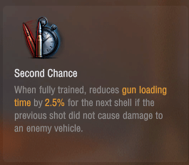敵戦車にダメージを与えられなかった場合、次の砲弾の装填時間が2.5%短縮される。というものです。