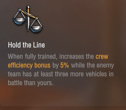 敵チームの戦車が自チームより3両以上多い場合、搭乗員の能力を5%上昇させる。というものです。
