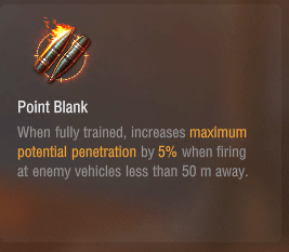 50m以内なので前線で戦う重戦車、中戦車や軽戦車で近距離戦に持ち込むときに有効かもしれません。ちょっと使いづらい印象がありますが、貫通を上げる手段としては貴重なものだと思います。