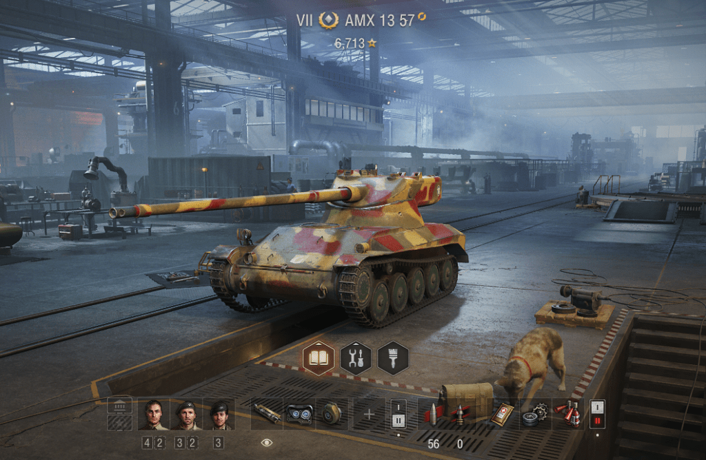 元々はシャーマン戦車に無理やり17ポンド砲を乗せた戦車なので俯角は6度になっています。砲垂直安定装置がこのティアで装備できるので私は装備しています。これじゃなくても良いとは思うのですが個性が出るので載せています。